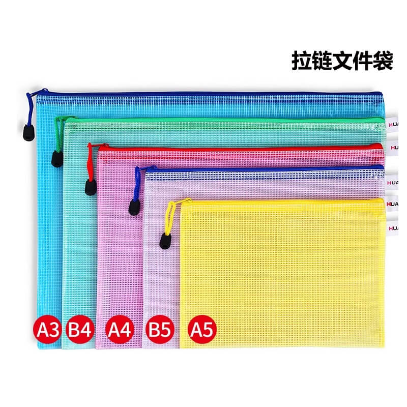 / 透明网格文件袋拉链袋 A4 颜色随机 特厚 A5