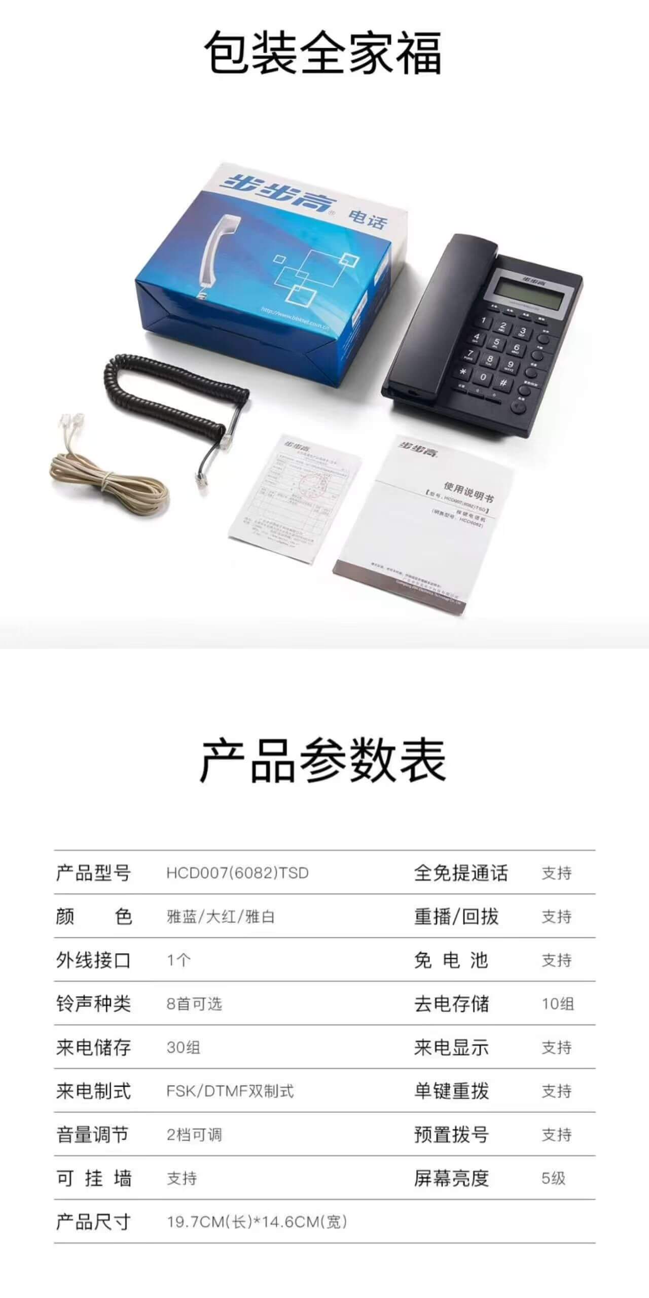 步步高(BBK)电话机座机 固定电话 办公家用 经久耐用 座式壁挂式 数量
