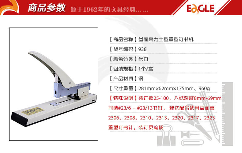 / 益而高 大号办公财务档案专用厚层100页重型订书机