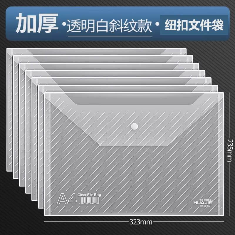 / 加厚大容量按扣 斜纹a4文件袋透明塑料办公收纳袋子1包(12个)